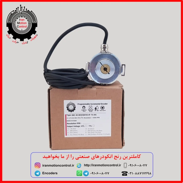 انکودر افزایشی قابل برنامهریزی IMC-M-BHS58H14-IP-T4-R5 با شفت هالو 14 میلیمتر، خروجی TTL (RS422)، رزولوشن 1 تا 4096 پالس – ساخت ایران